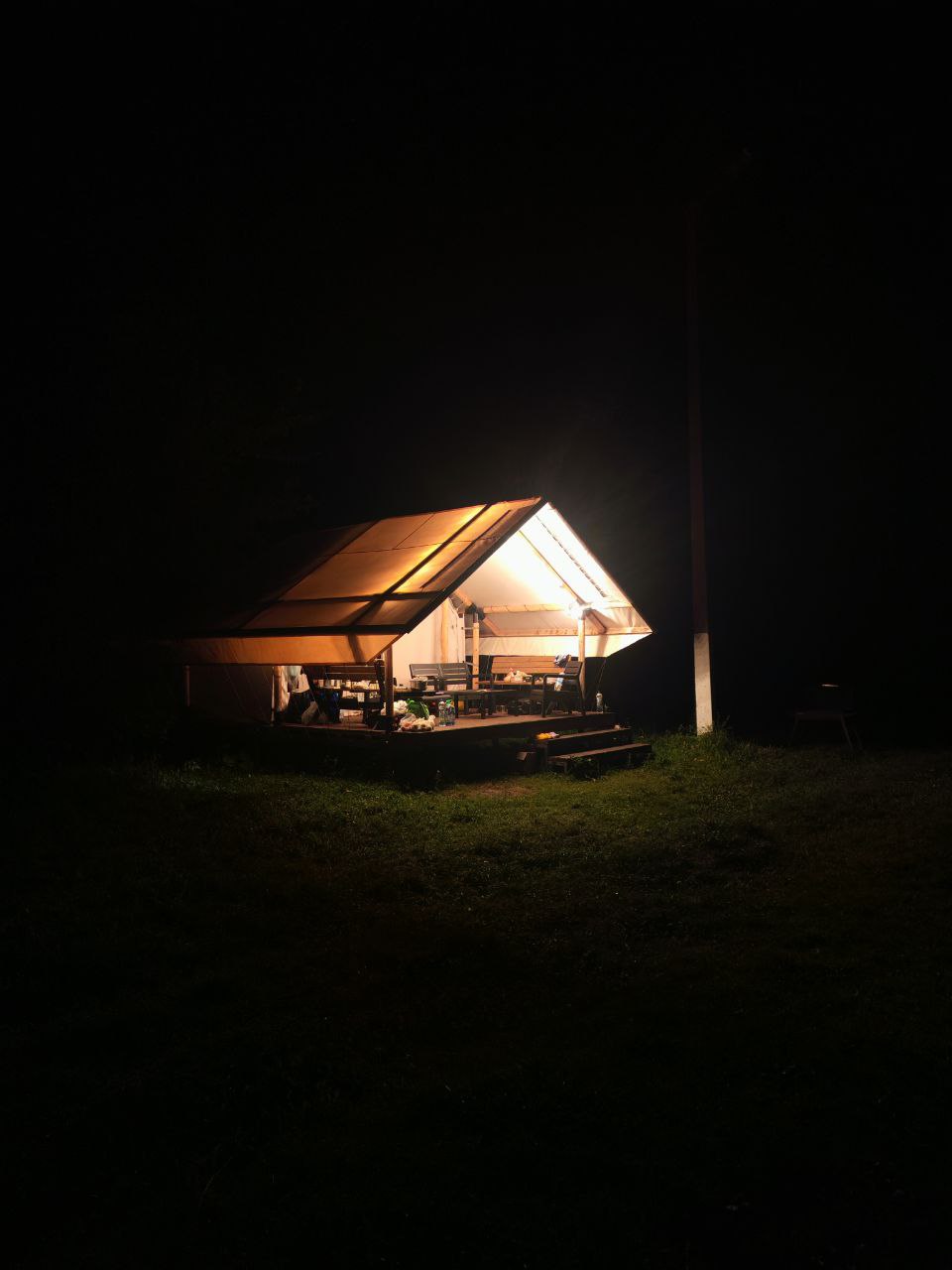 Проживание в комфортном кемпинге (4-местное расселение в домиках, постельное бельё + полотенца). Тёплый душ и туалет.
